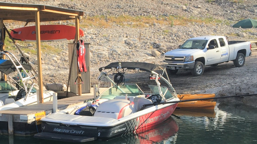 Medina Lake has some of the cleanest lake water in Texas from the filtering nature of all the limestone. Its not crystal clear like the spring-fed San Marcos River, and the water level (and where the waterfront is) varies a lot. So you win some and loose some, but overall the water quality is great to play and swim in. Even during windy days, the lake has protected coves in parts if things are more choppy than normal.