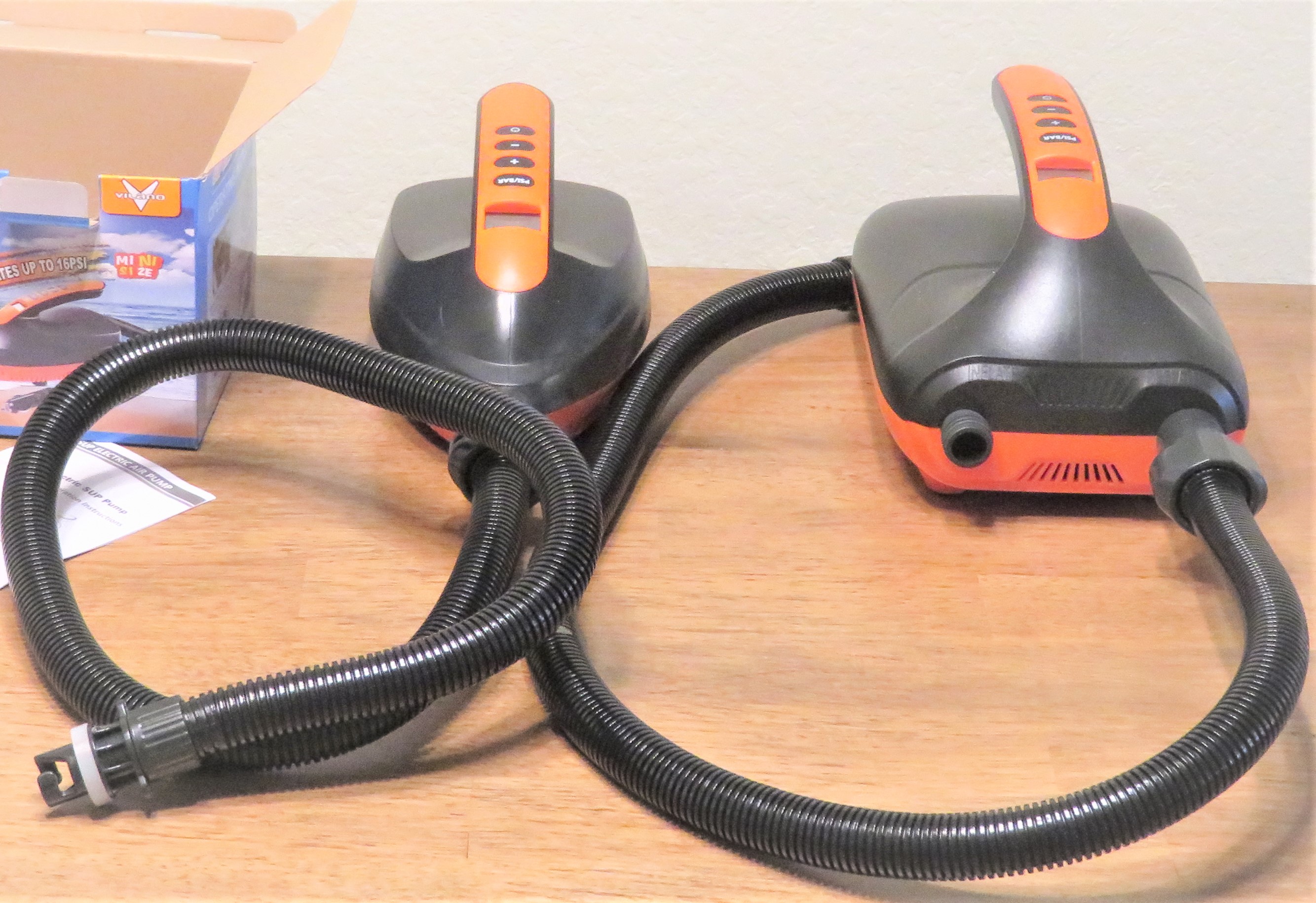 - I use this fast and simple one for around $70-80. They are quite until it gets to 1 PSI then kicks in the high-pressure pump. I always lend one of these to people who rent my Cypress paddle boards.