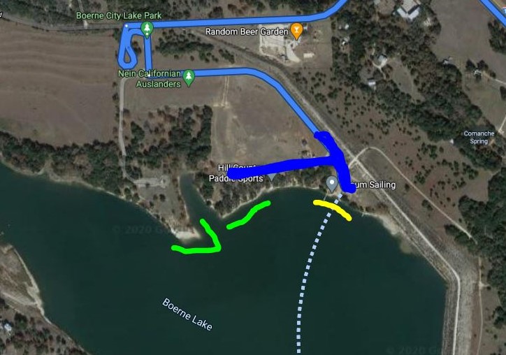 Its success is also its biggest problem – Boerne City Lake Park is in a small town (population 20,000-ish) just 20 miles north of San Antonio (population 1-million-too-many). So to prevent the fun, medium-size park from being overrun on those wonderful April and September weekends, they do have a toll-booth operating during certain months or weekends of the year. I think it’s worth it to pay $15 and enjoy my time, but that’s not realistic for everyone’s budget or may not feel worth if it if you just want to swing by for an hour. On occasion then will have a person from the city parks dept (Leslie Knope?) make sure boaters have life jackets and not using motors and such.